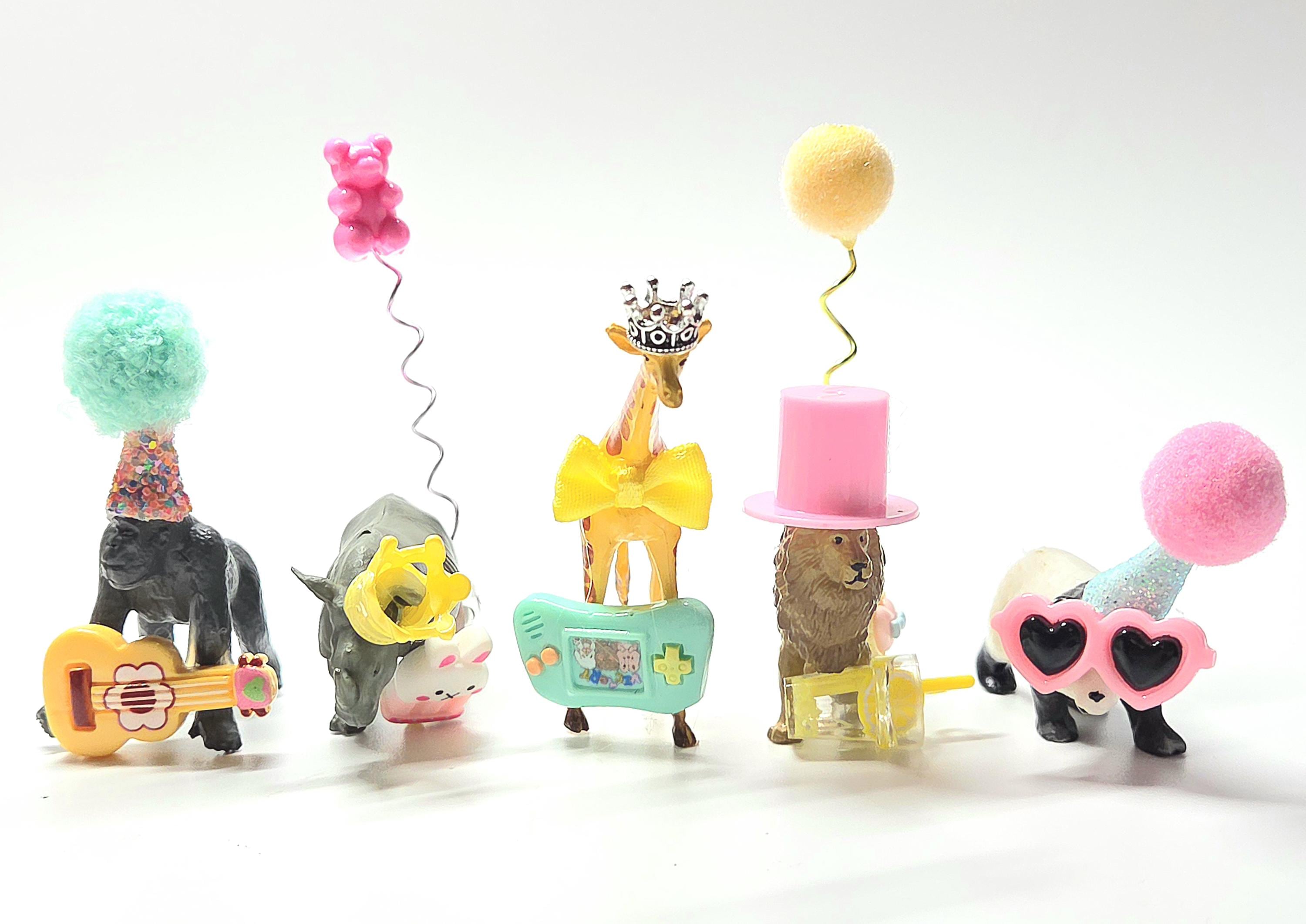 To add extra WOW factor we can add tiny party accessories to your animals! Just choose this option at check out. If you choose this option there will be a mix of hats/balloons/charms/bows/crowns depending on what works best for each animal type.