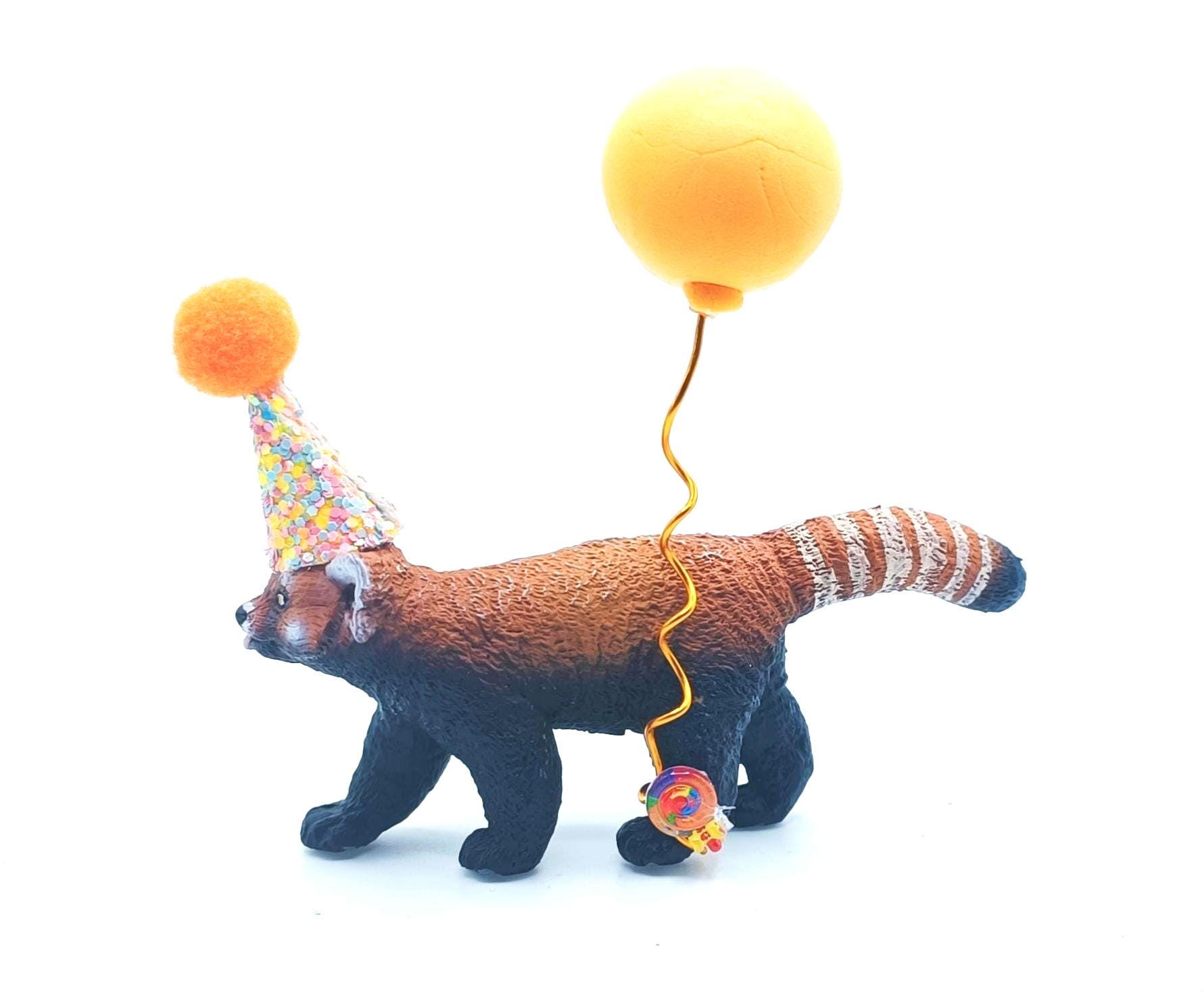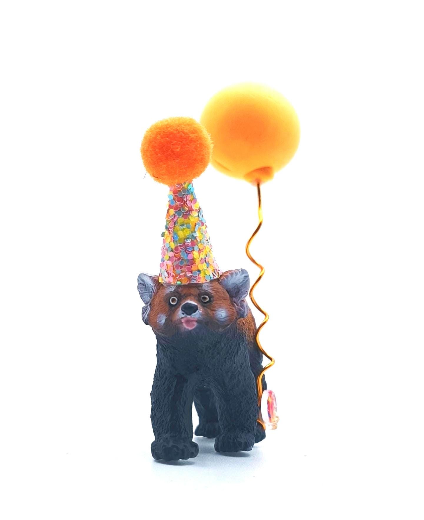 Our red panda is high quality and very detailed. It comes with a hand crafted mini party hat, making it the most unique cake topper or table decoration for any wild animal lover! This little showstopper wil be perfect to keep after the celebration too.
