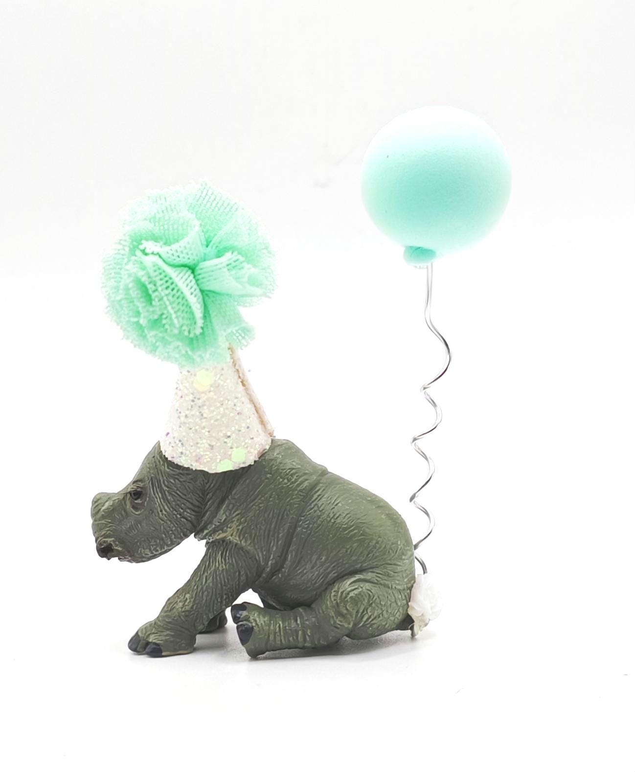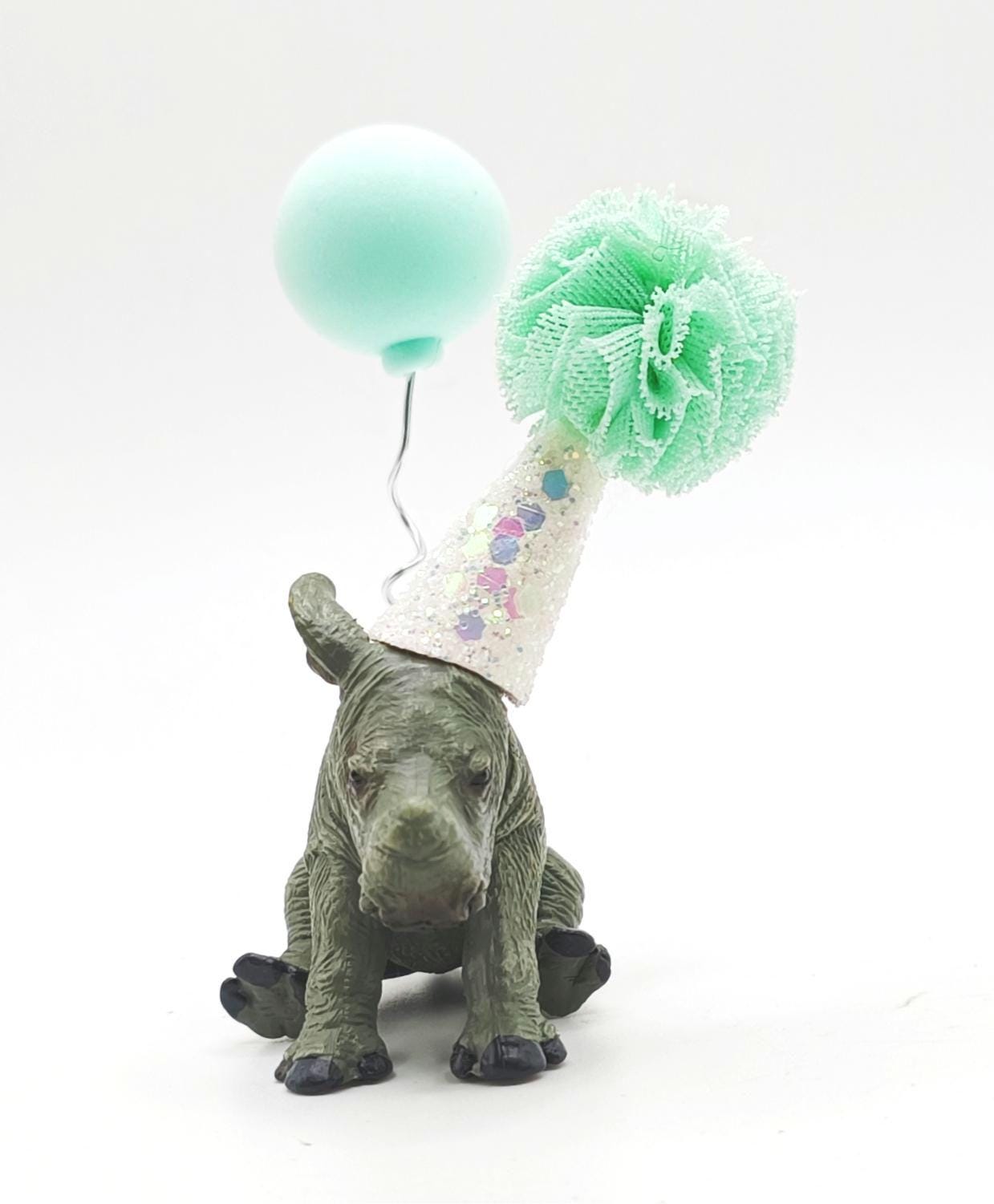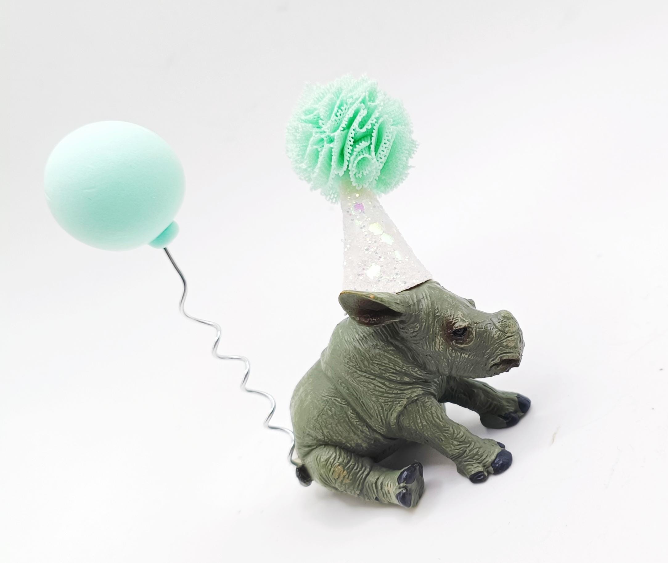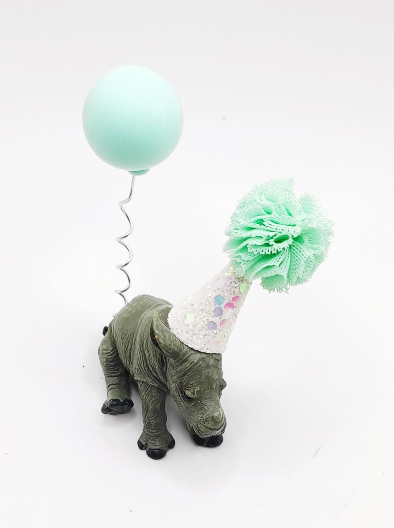 Our adorable baby rhino is high quality and very detailed. It comes with a hand crafted mini party hat, making it the most unique cake topper or table decoration for any wild animal lover! This little showstopper will be perfect to keep after the celebration too.