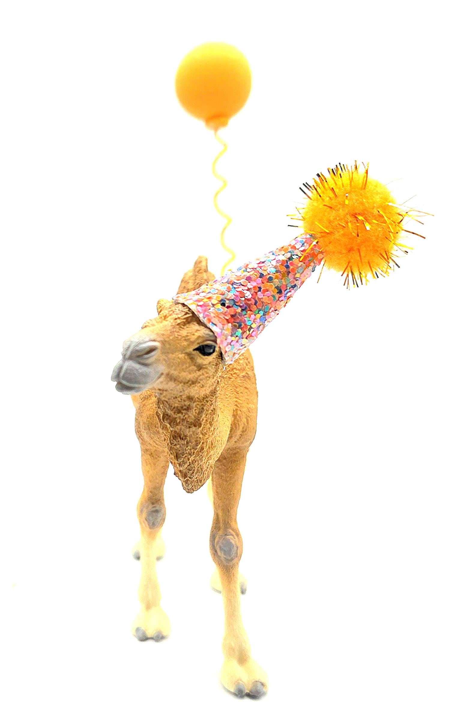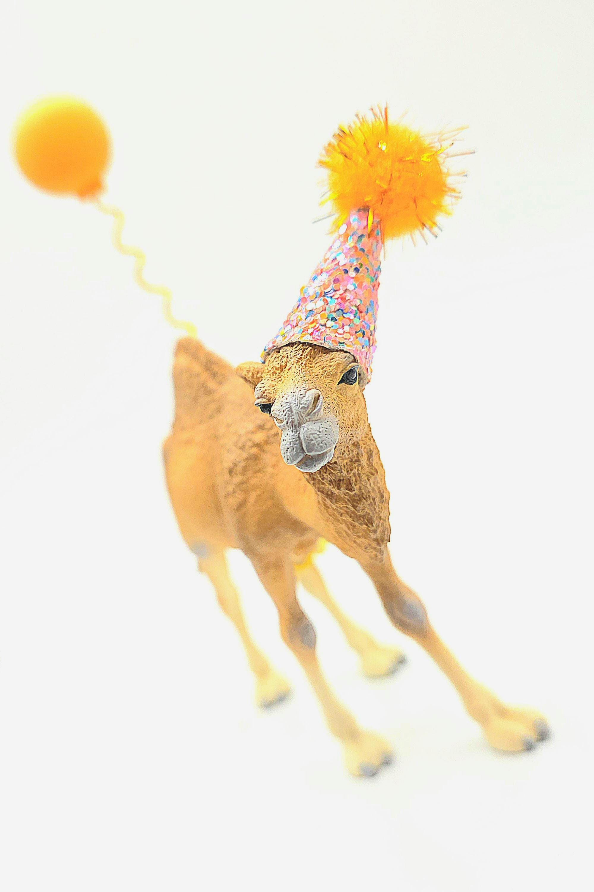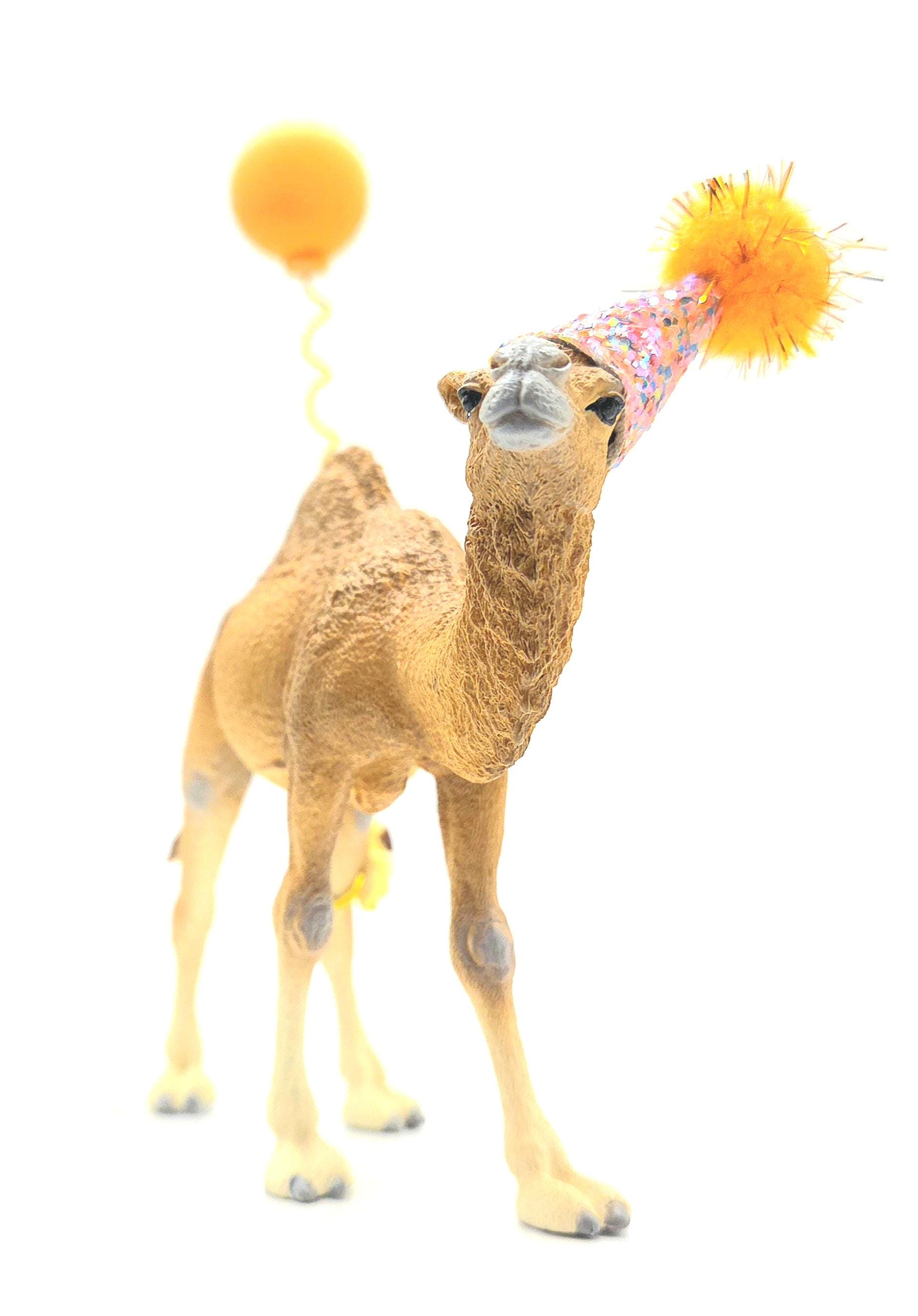 Our camel comes WITH a party hat. Just let us know in the personalisation section what colours you woukd like for your camels hat and any other accessories you have chosen.