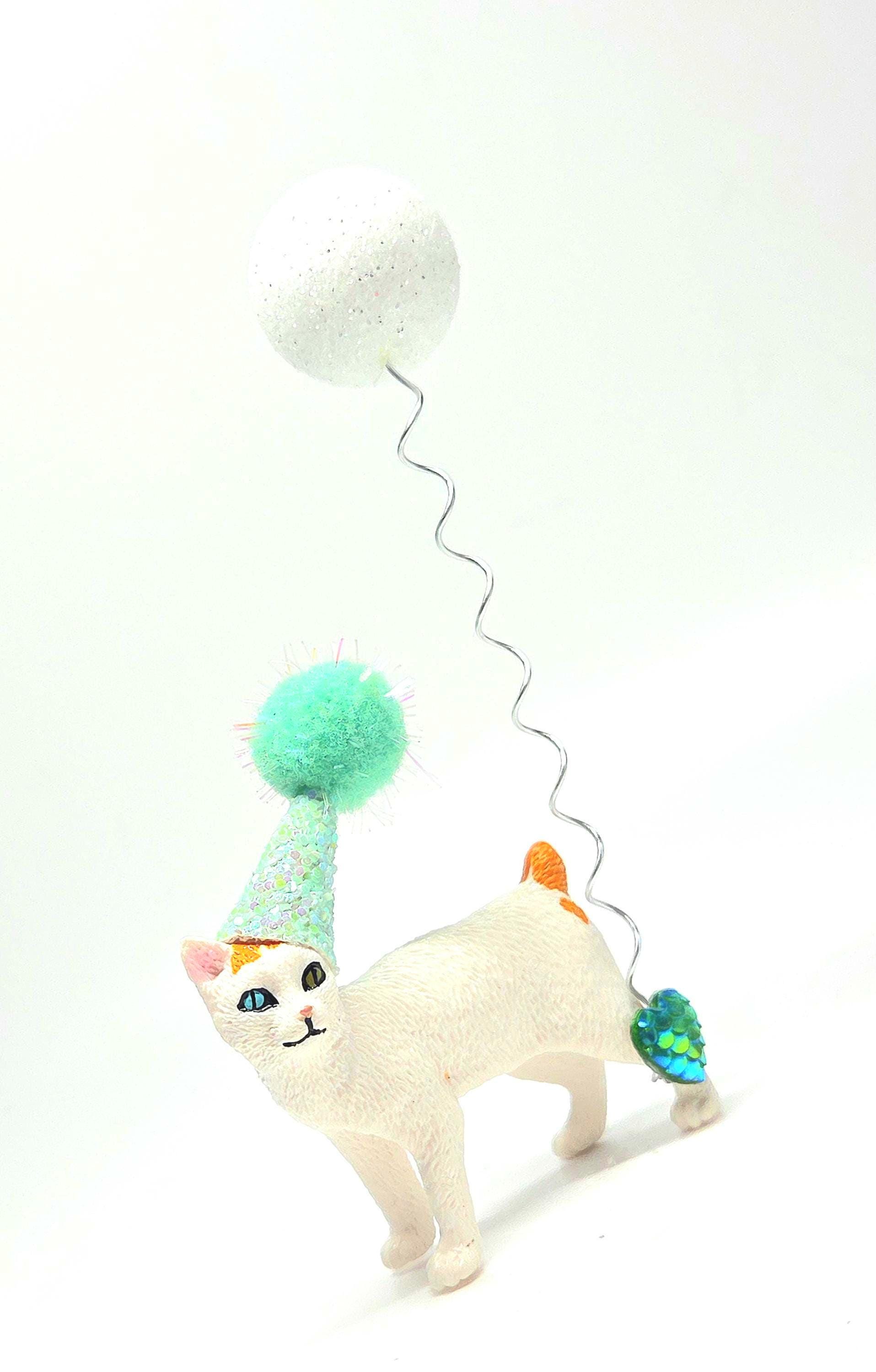 Our adorable Japanese Bobtail cat will add some real cuteness and uniqueness to your celebration. Our high quality short tailed figure comes with a hand crafted mini party hat, in your choice of colour, and would be perfect as a cake topper or table decoration at any cat lovers party!