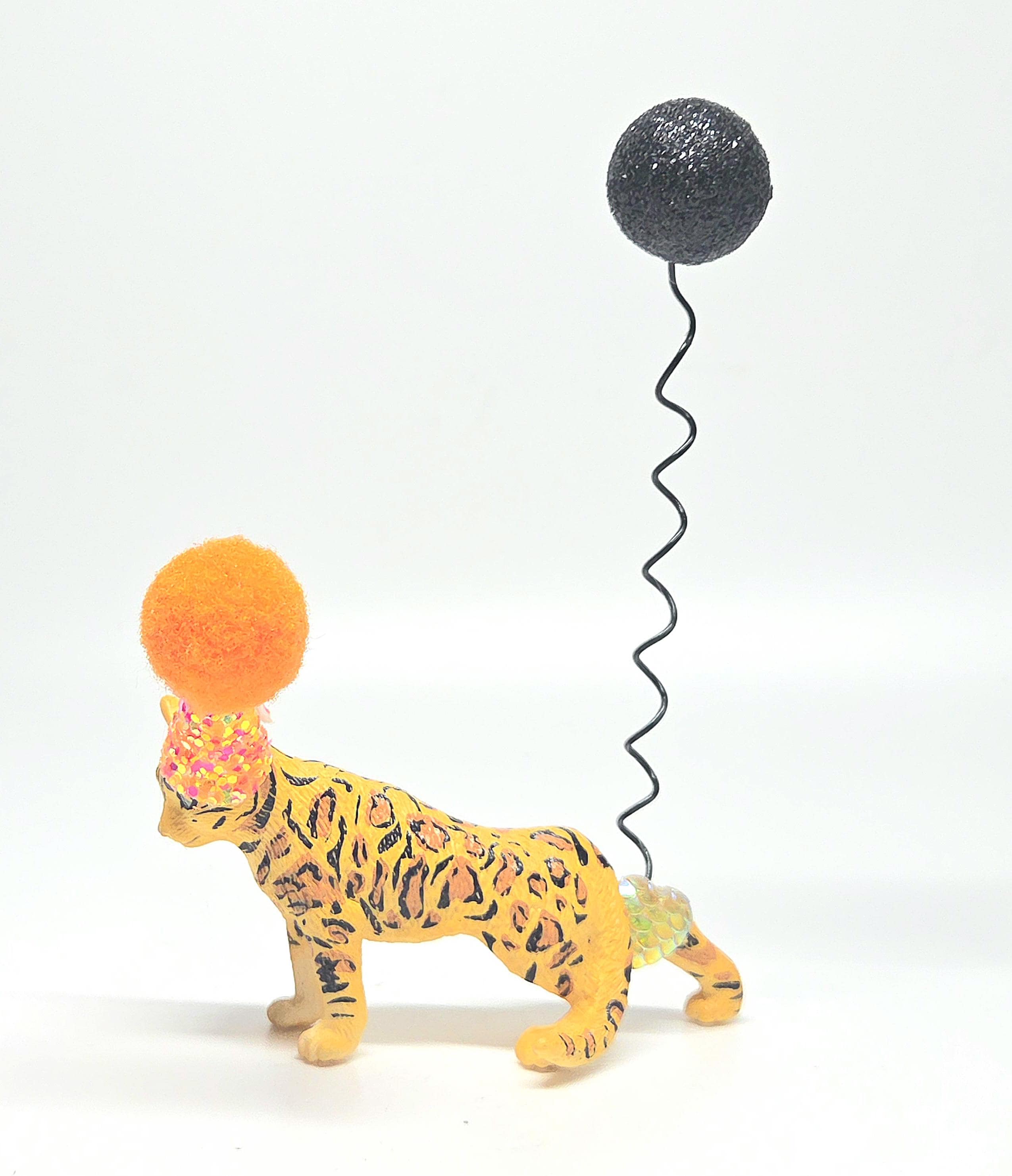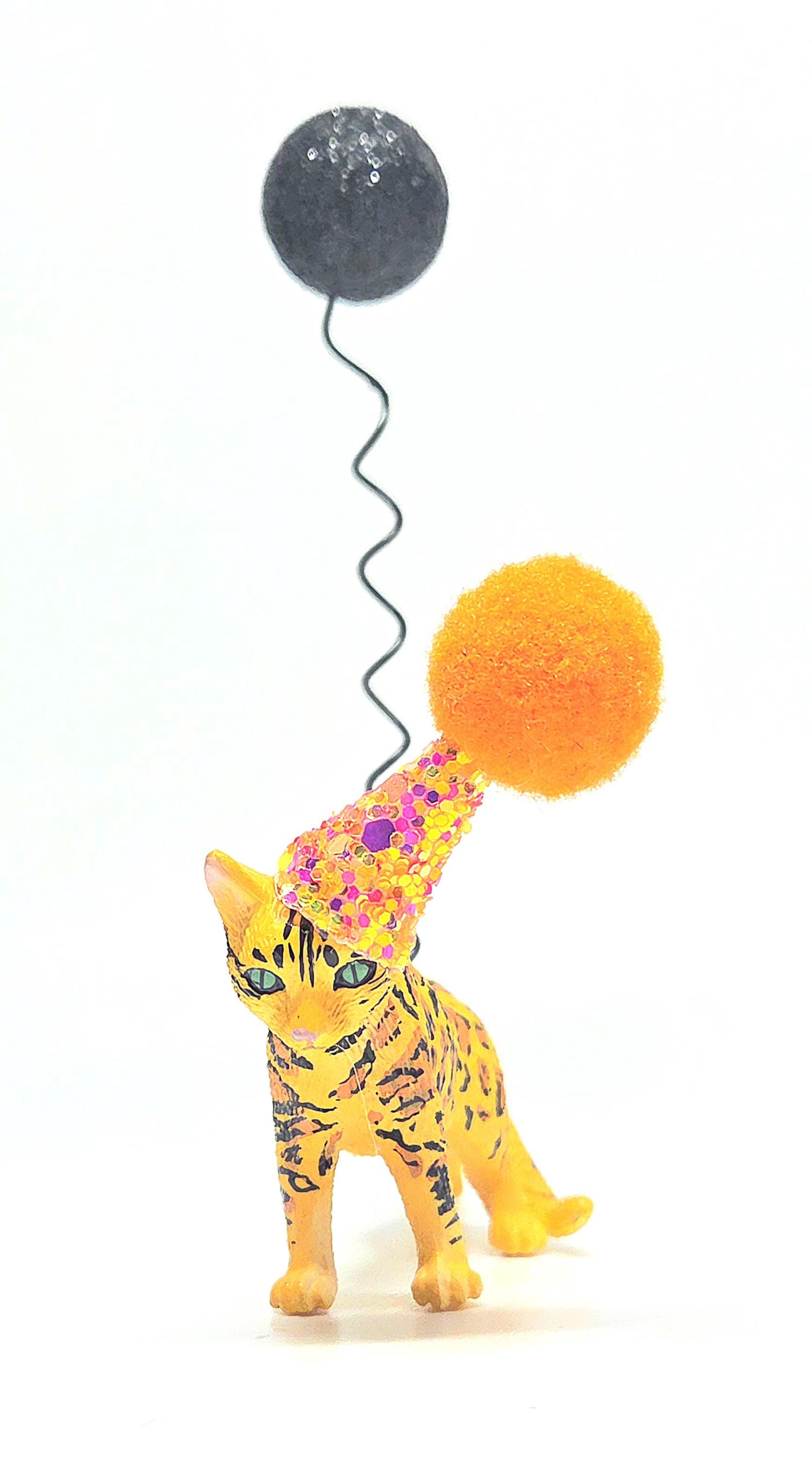 Our adorable Spotted Leopard cat will add some real cuteness and uniqueness to your celebration. Our high quality prowling figure comes with a hand crafted mini party hat, in your choice of colour, and would be perfect as a cake topper or table decoration at any cat lovers party!