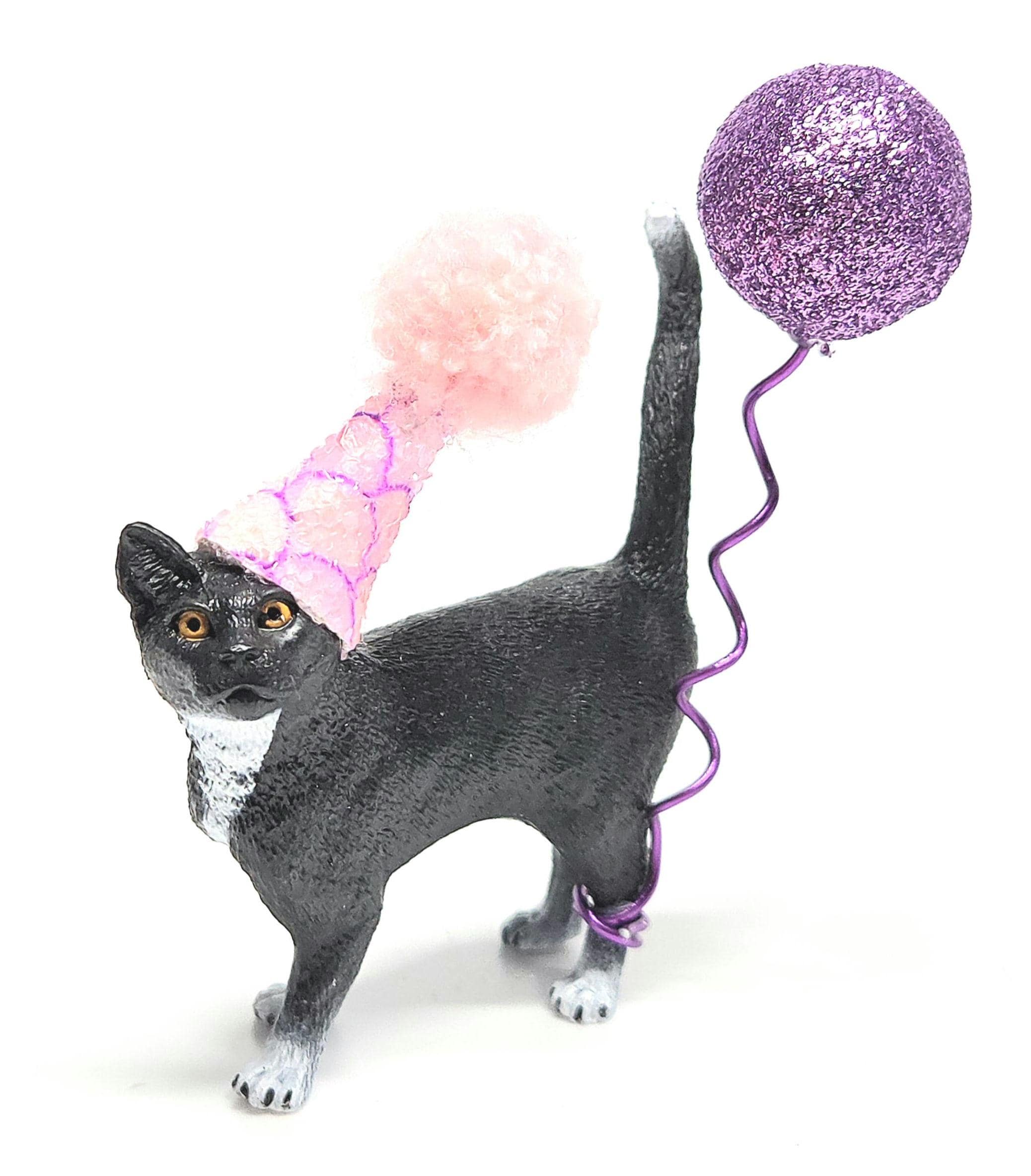 Our adorable black & white cat will add some real cuteness and uniqueness to your celebration. Our high quality figure comes with a hand crafted mini party hat, in your choice of colour, and would be perfect as a cake topper or table decoration at any cat lovers party!